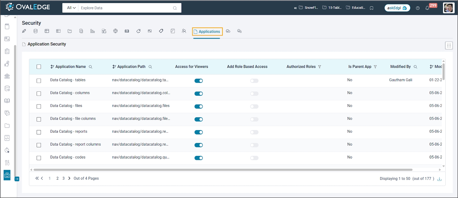 OvalEdge's Application Security allows administrators (OE_ADMIN and "ovaledge.role.admin") to implement two methods for granular access control: