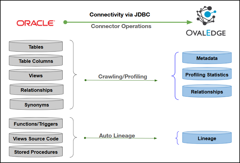 This document outlines the integration with Oracle, enabling streamlined metadata management through features such as crawling, profiling, querying, data preview, and lineage building (both automatic and manual). Additionally, it ensures secure authentication via Credential Manager.