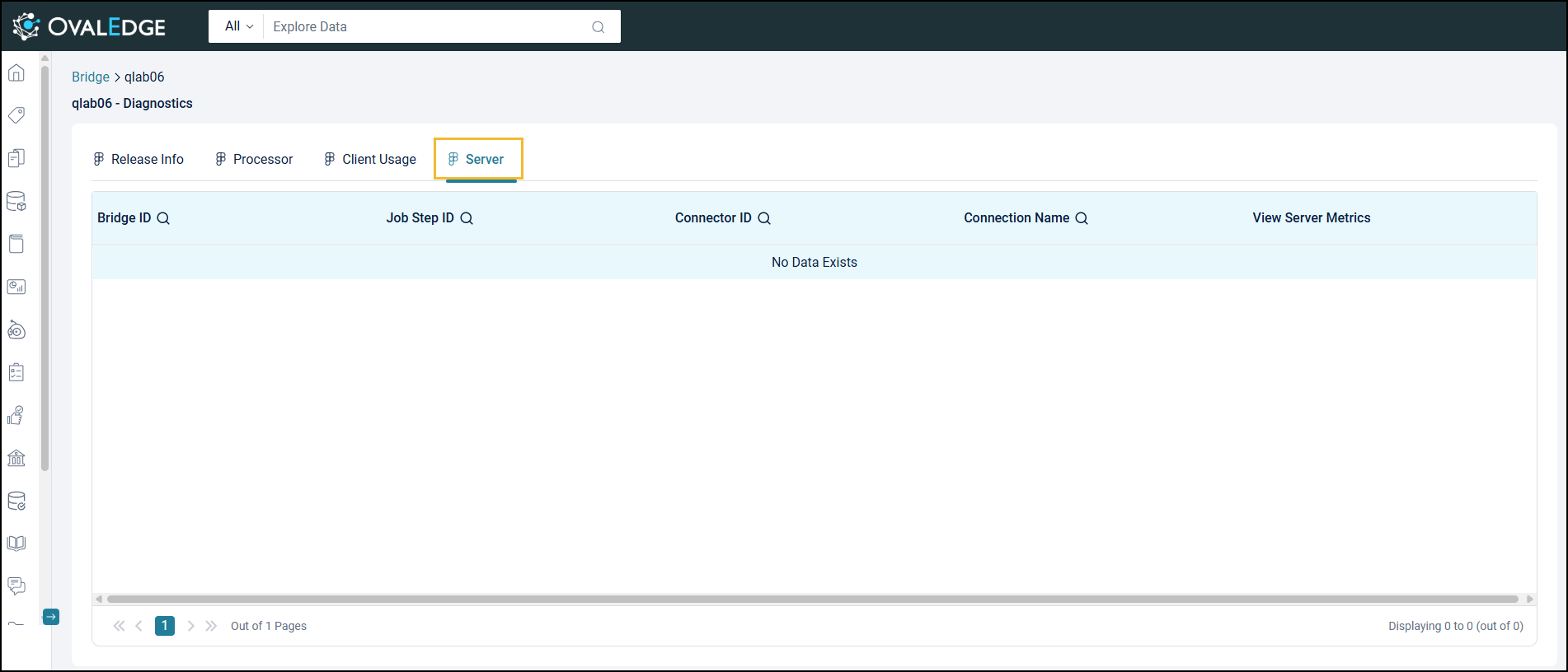 The Server tab provides visibility into server-side activity and request handling for the bridge. It helps monitor how connections interact with the bridge and supports performance analysis and operational monitoring.