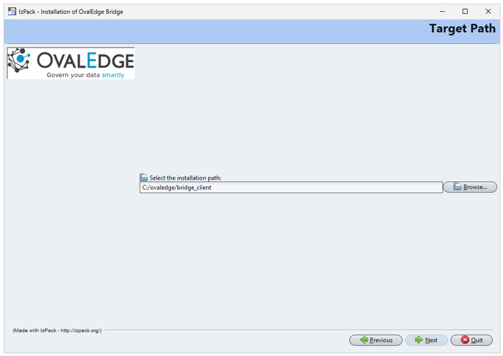 The default installation path is C:/ovaledge/ovaledge_bridge