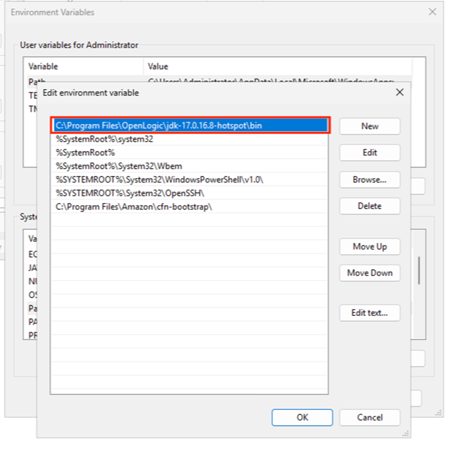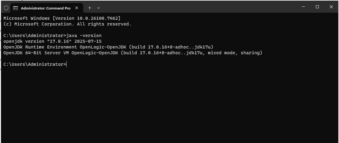 JVM: Specify the full path to the jvm.dll file, typically located at: C:\Program Files\OpenLogic\jdk-17.0.16.8-hotspot\bin\server\jvm.dll