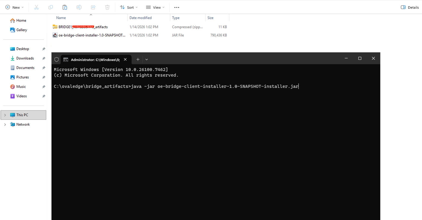 Copy the Bridge Secure Connectivity Pack (zip file) and ovaledge-bridge-client-installer.jar into the bridge_artifacts folder.