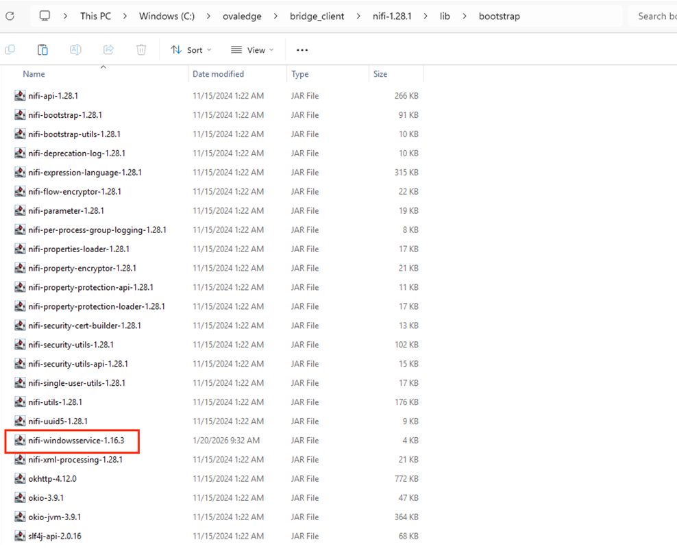 Delete the nifi-windowsservice-1.11.4.jar file located in the nifi-1.28.1/lib/bootstrap folder.