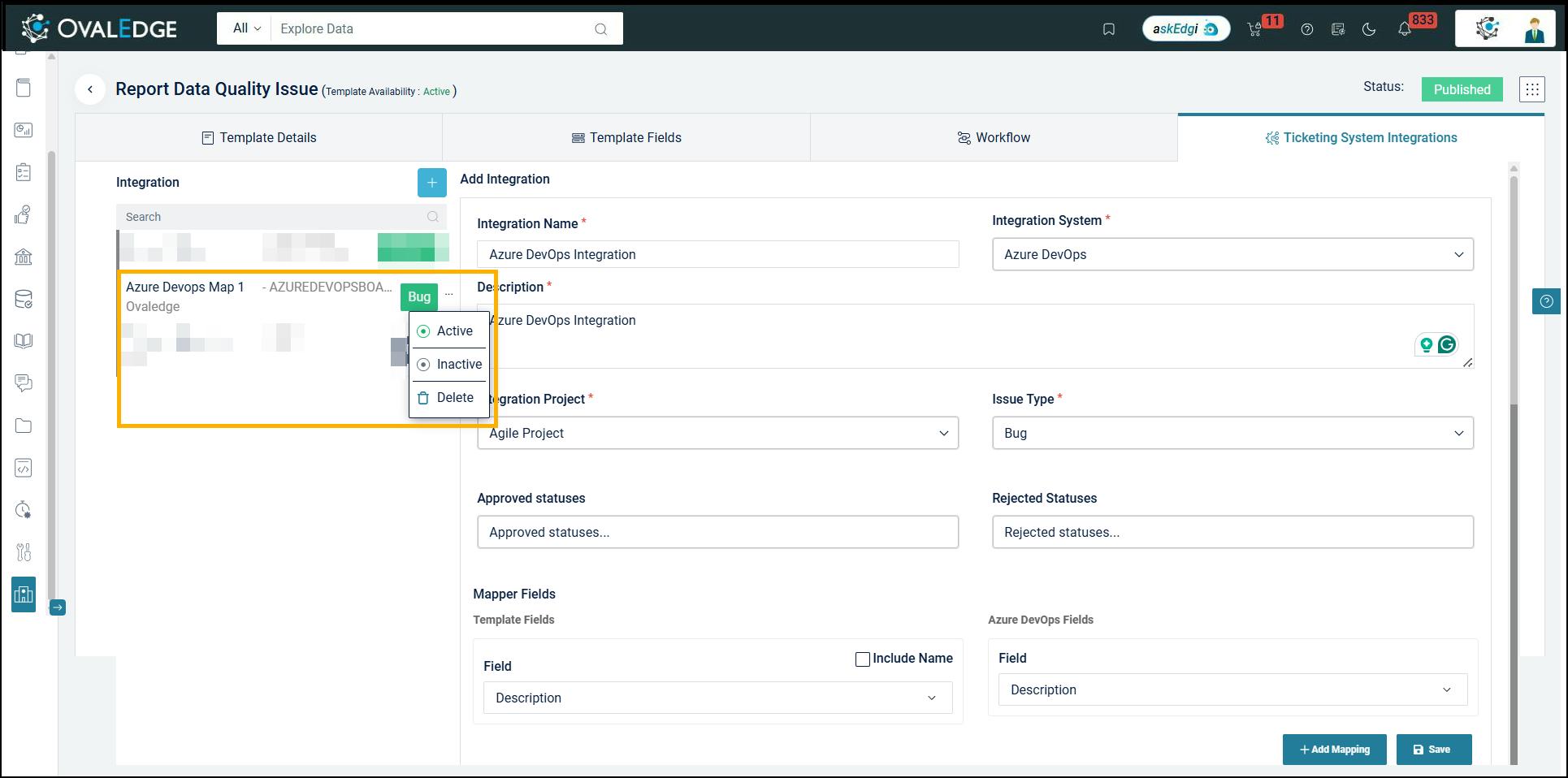 5. **Map Fields Between OvalEdge and Azure DevOps**