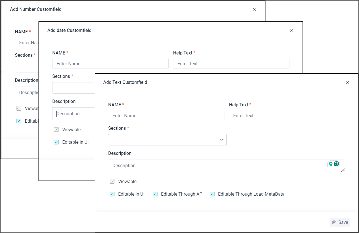 Editable Through API: By default, the checkbox is selected to enable and leverage API functionality to edit, add, or delete custom fields.
