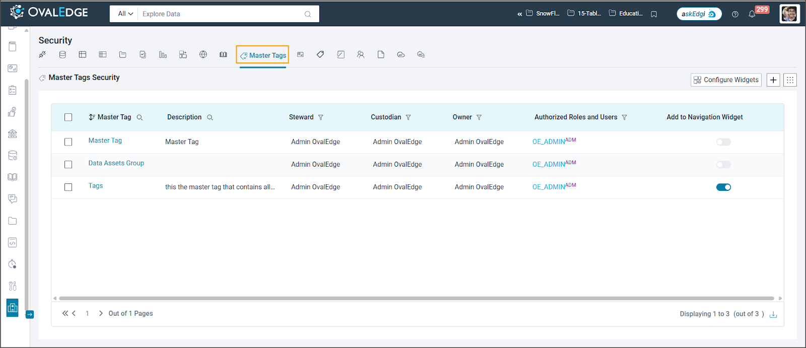 Create Master Tags: It allows users to create a new master tag and configure Governance roles such as Steward, Custodian, and Owner.