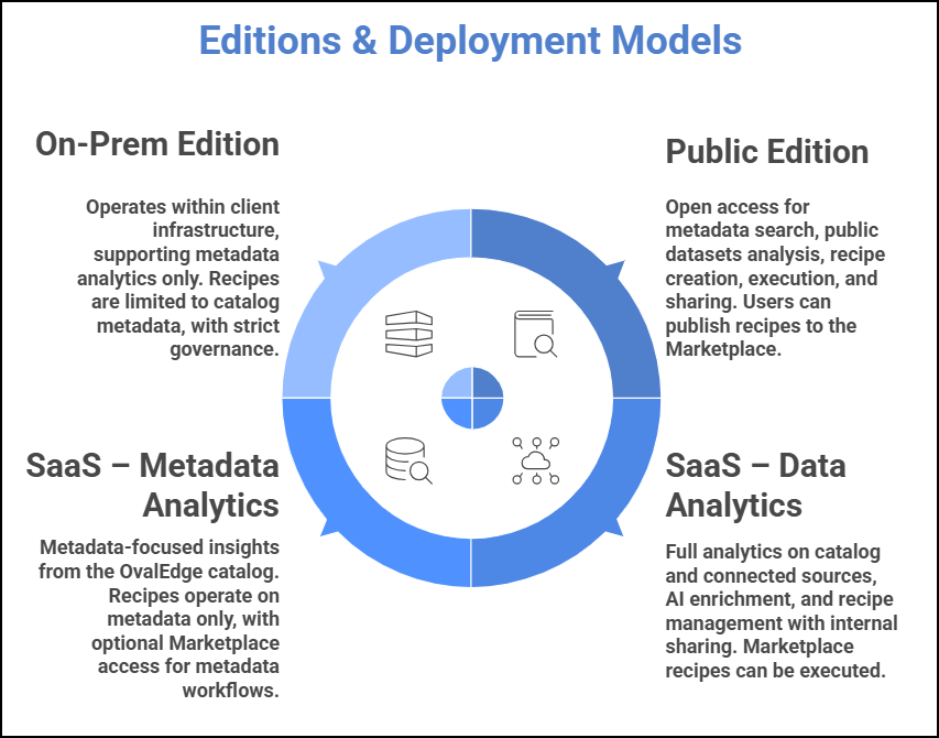 On-Prem supports Metadata Analytics only (catalog search, profiling, metadata insights using OvalEdgeDB / -1 connector).