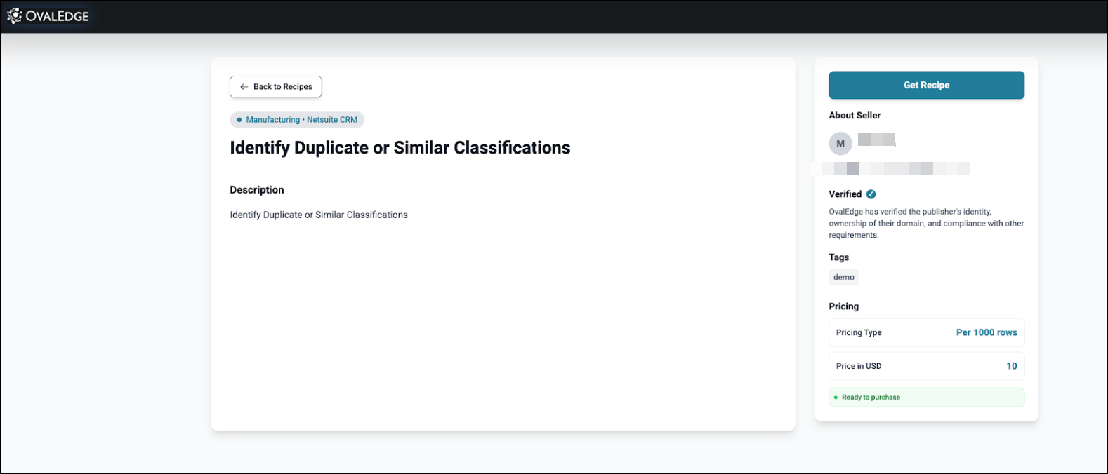 Upon approval, the recipe becomes publicly available in the OvalEdge Marketplace for browsing, subscription, and reuse.