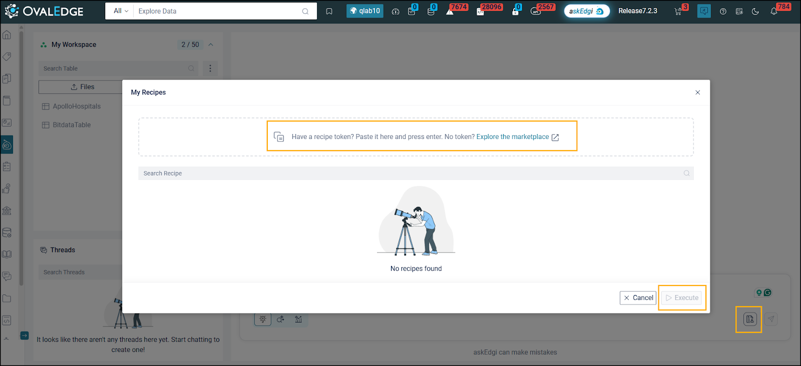 Metadata-only tenants can execute Marketplace recipes limited to the OvalEdge (-1) connector.