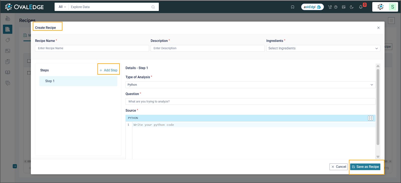 Executing a Recipe in askEdgi