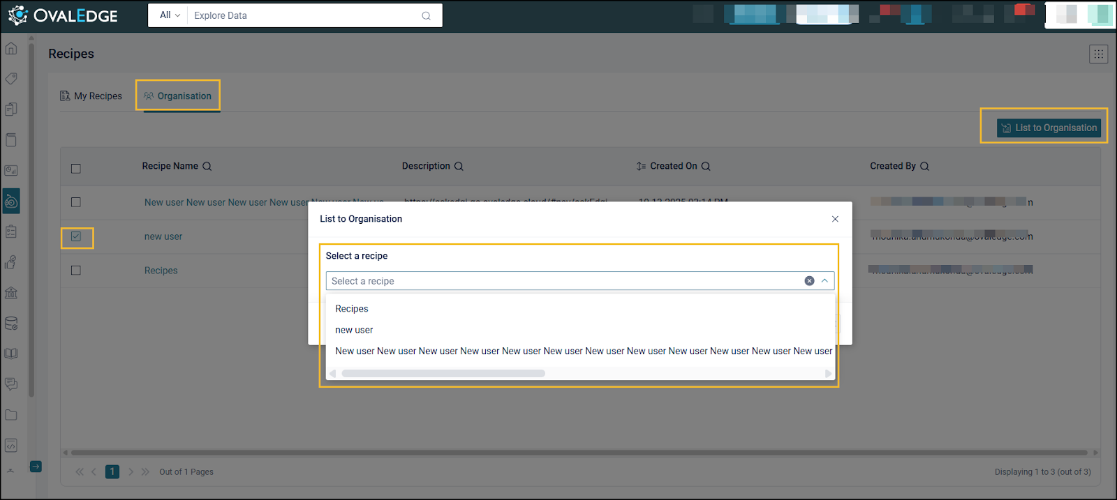 Listing a Recipe to Organisation