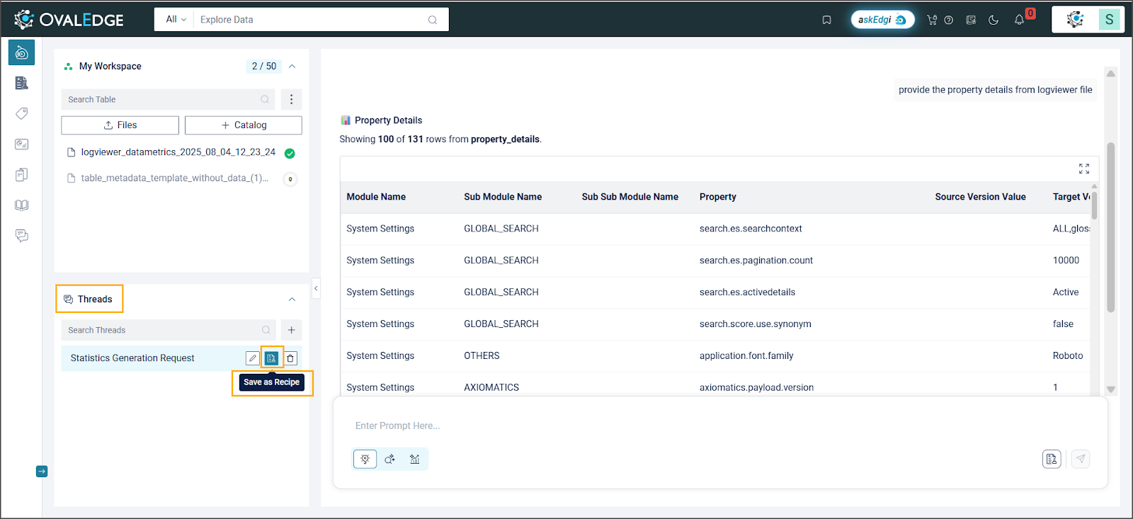 The On-Prem Edition provides recipe functionality within a locally managed infrastructure, emphasizing data governance and internal control. Recipe creation and execution capabilities are available only for metadata analytics, maintaining strict compliance with on-premises governance frameworks.