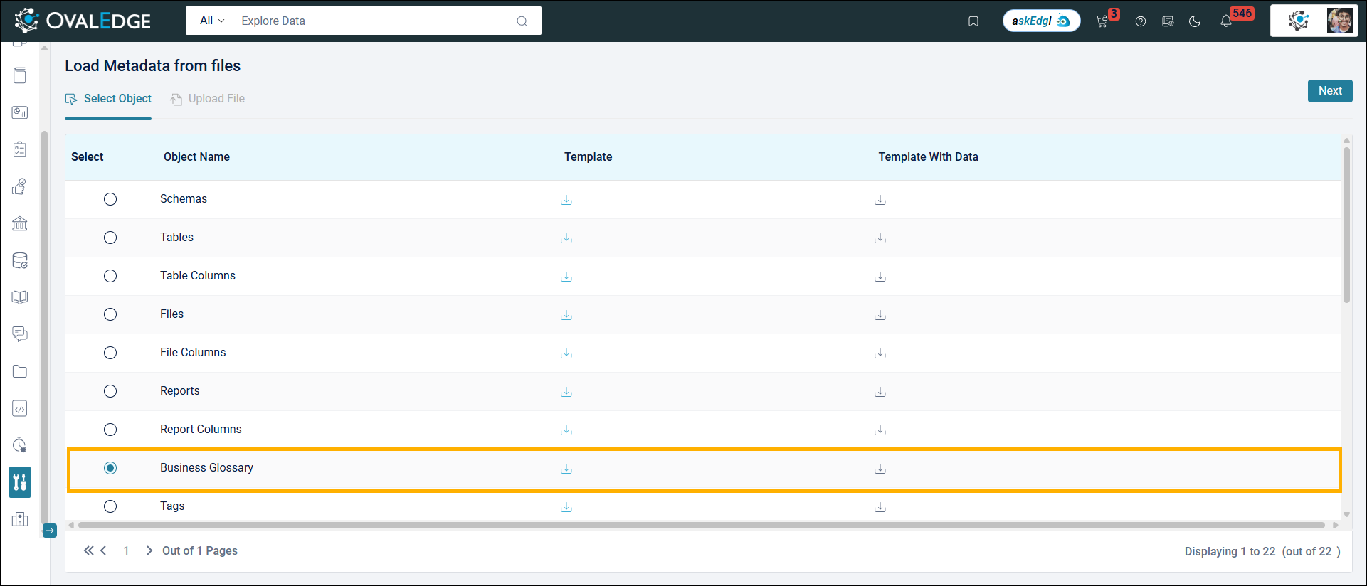 The term can be associated with data objects via LMDF. Users can download the Business Glossary LMDF Template with or without data and specify the data object details where they want the term to be associated.