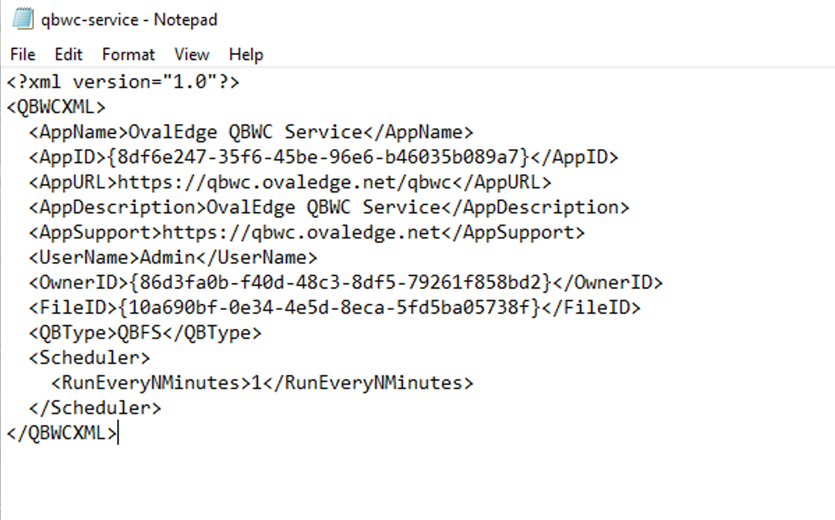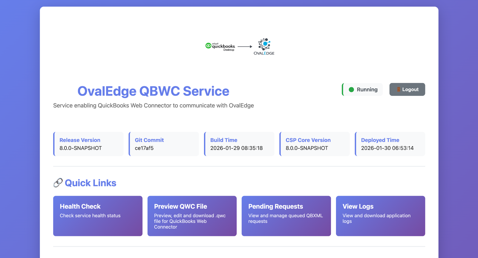 The endpoint URL used by the connector to communicate with the OvalEdge QuickBooks Web Connector service.