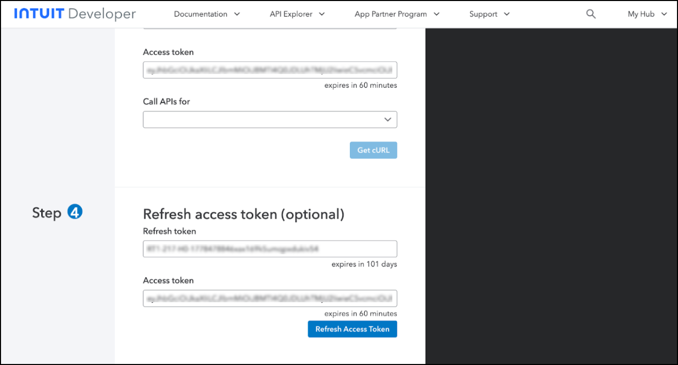 Copy the refresh_token value from the Response section.