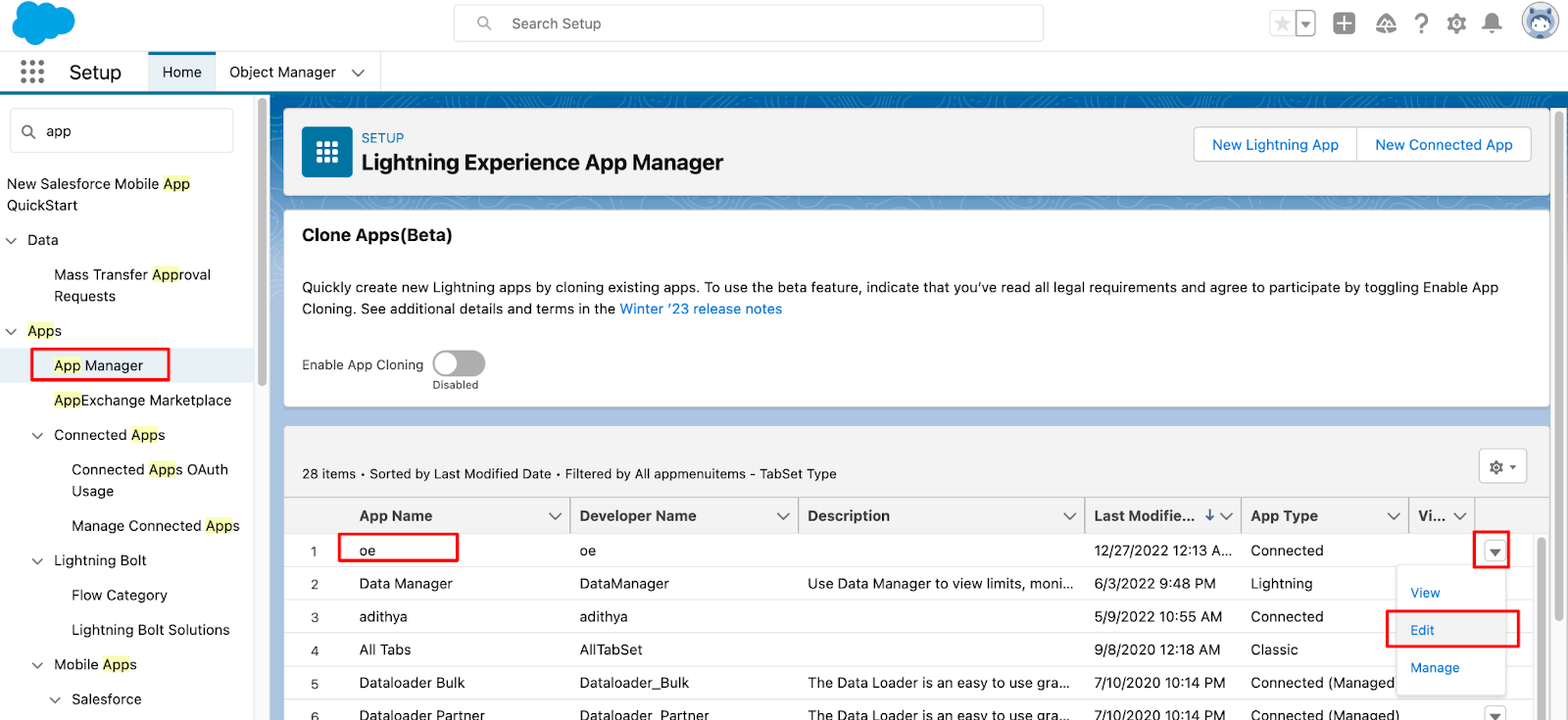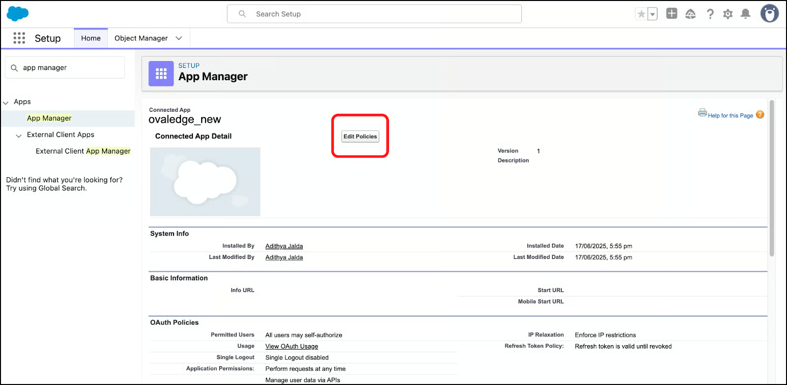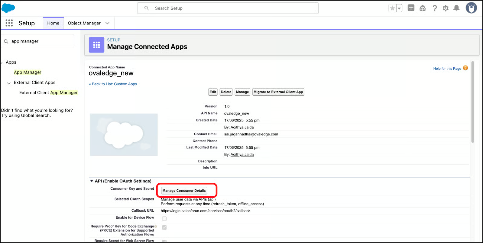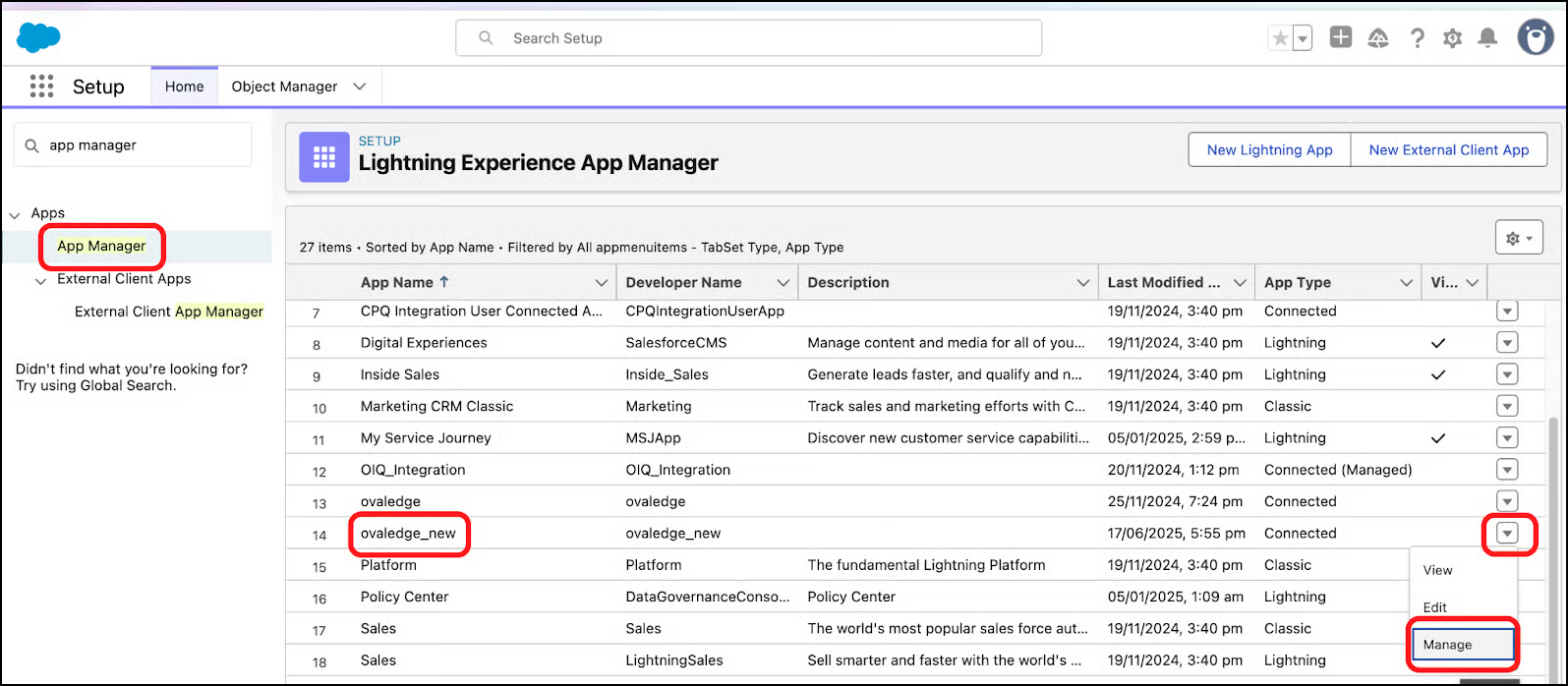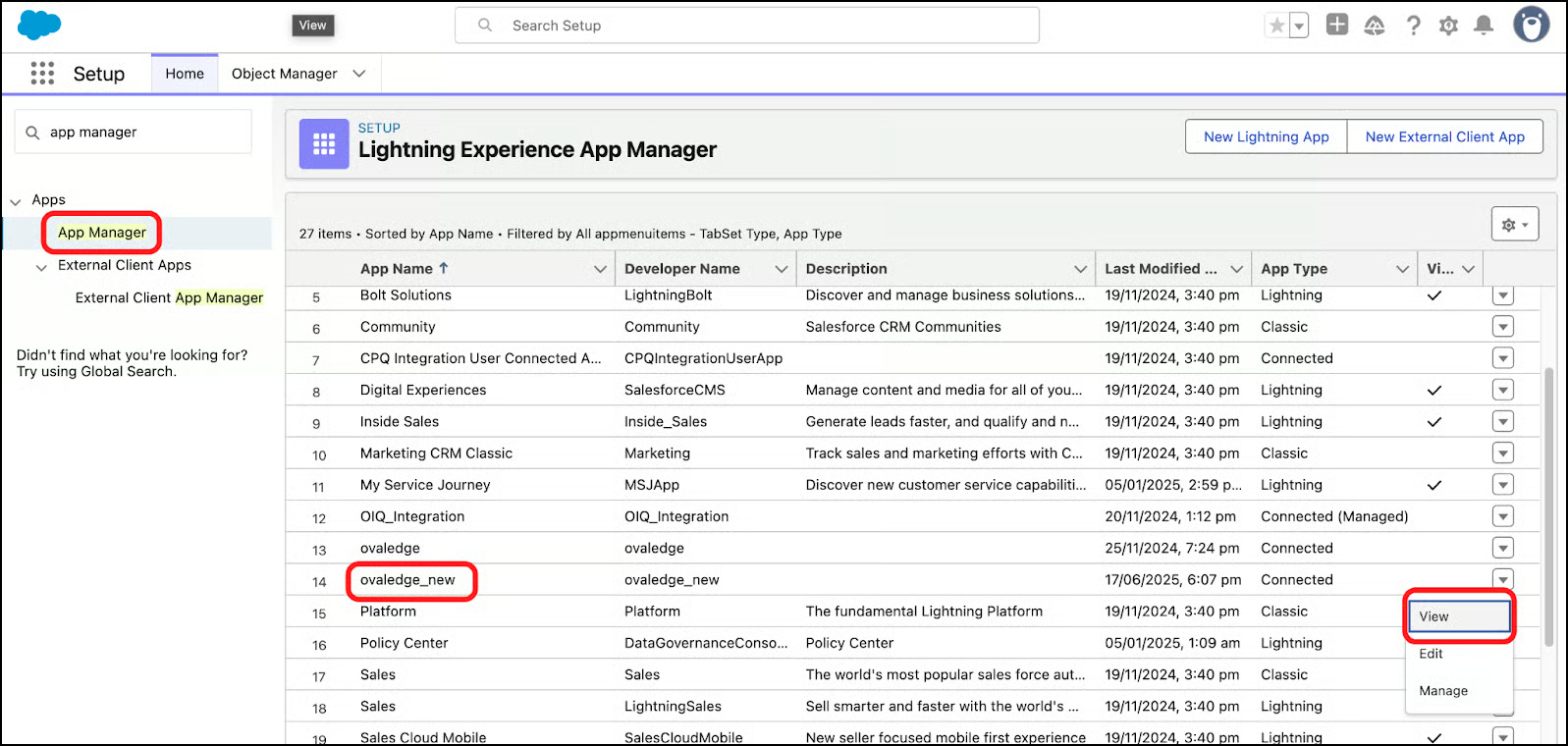 Go to App Manager > locate the connected app > click the dropdown > View.