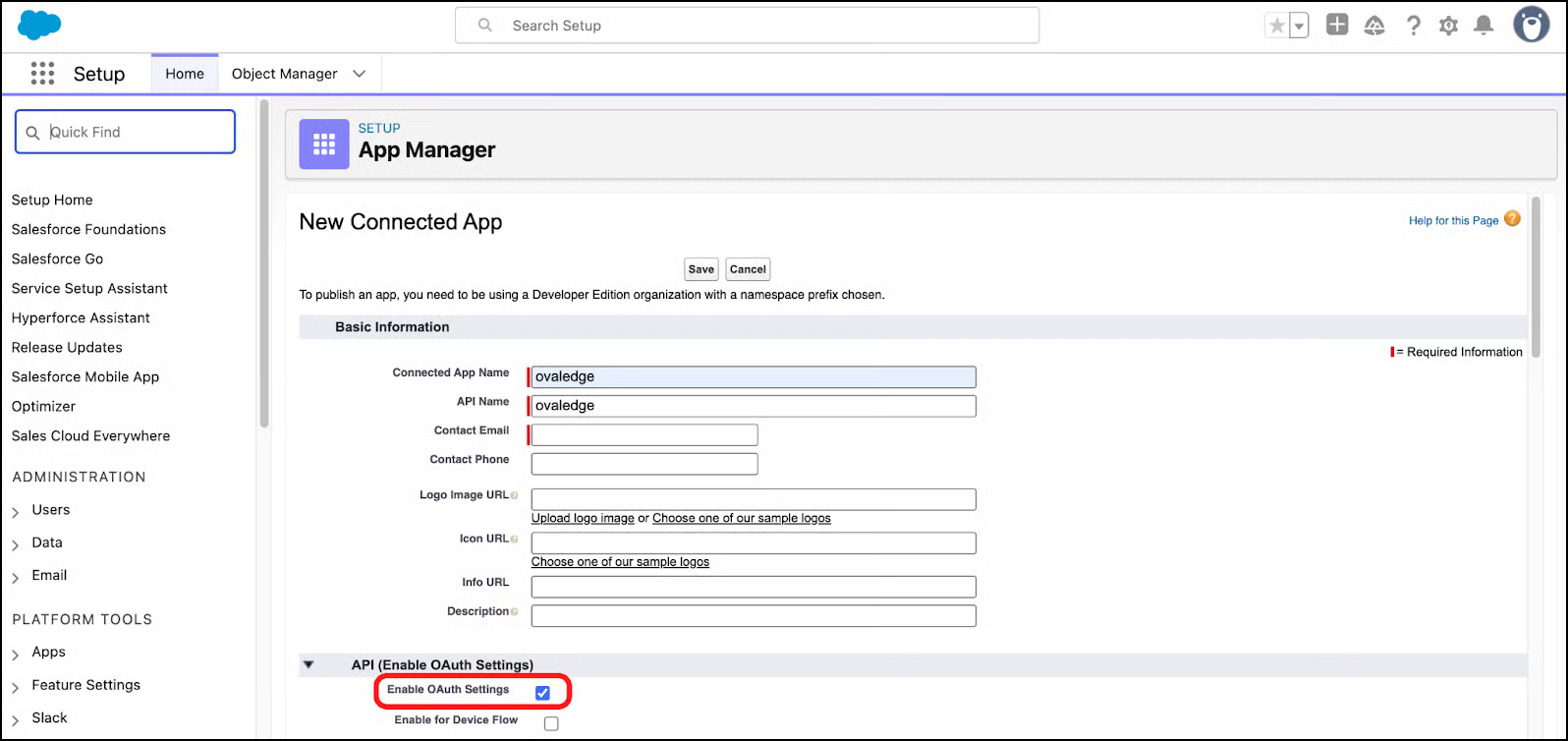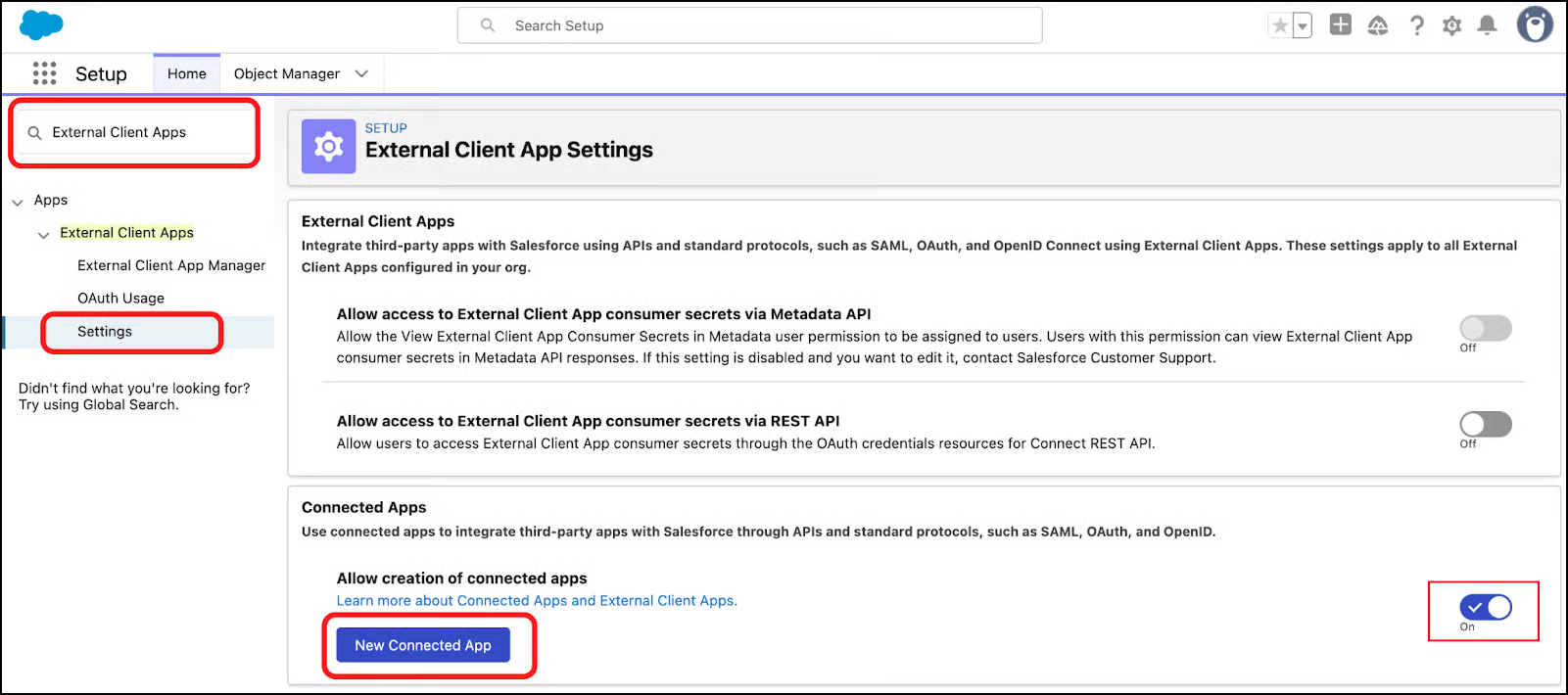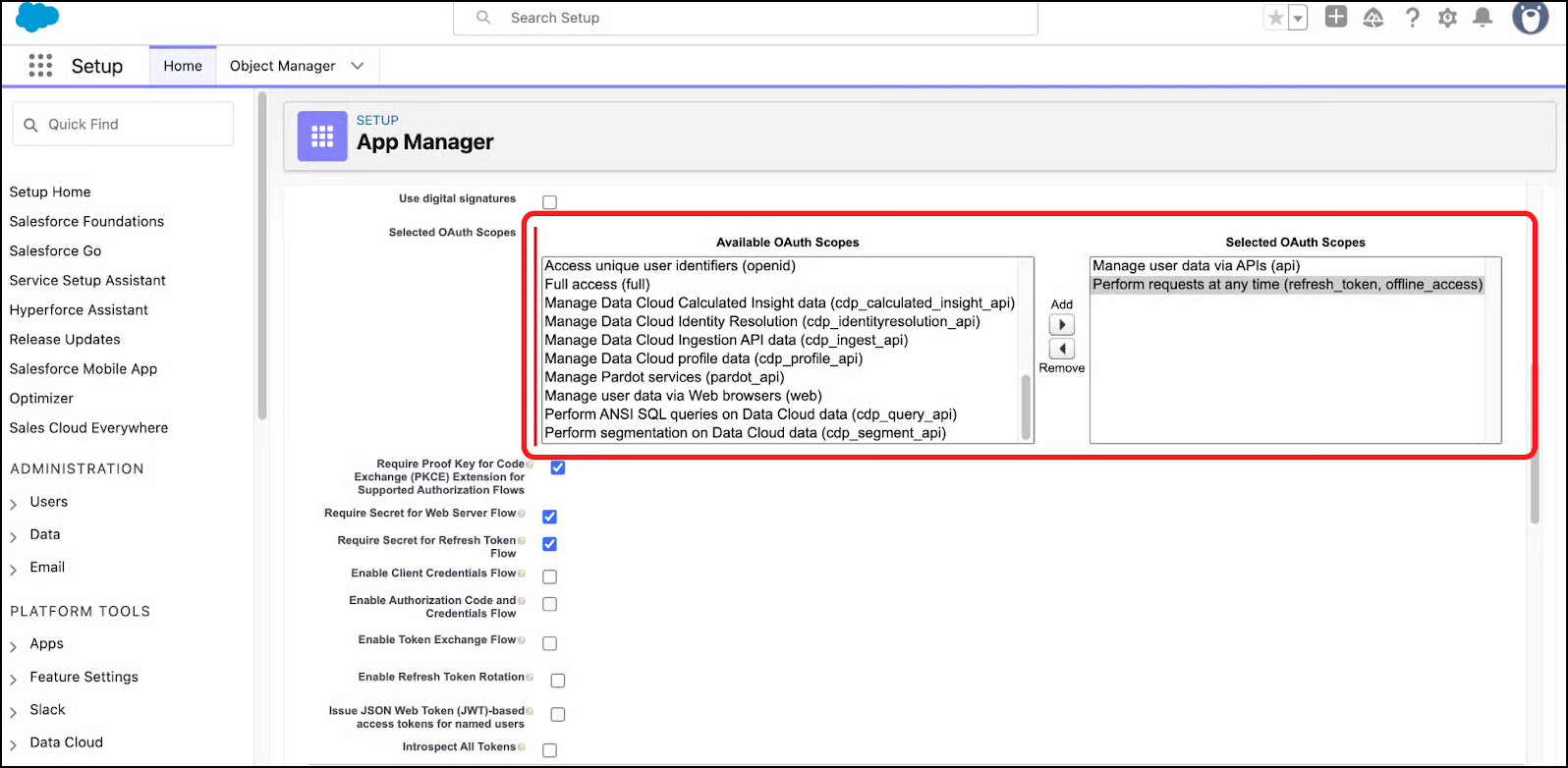Configure Org-Level OAuth Settings Before creating connected apps, the specific OAuth flows required for authentication must be enabled.
