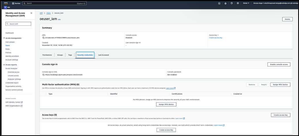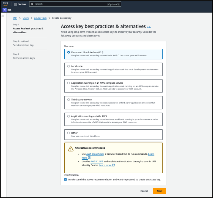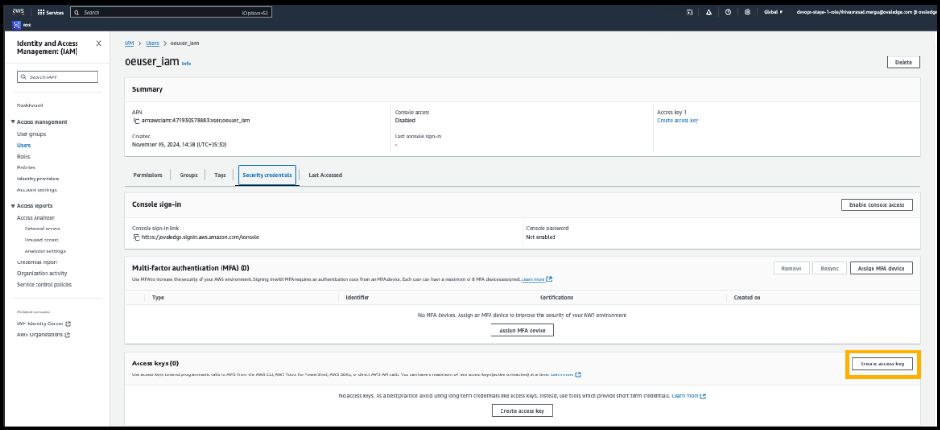 Using IAM User Authentication, you can generate an Access Key, Secret Key, Secret Manager, and Secrets Manager Region.