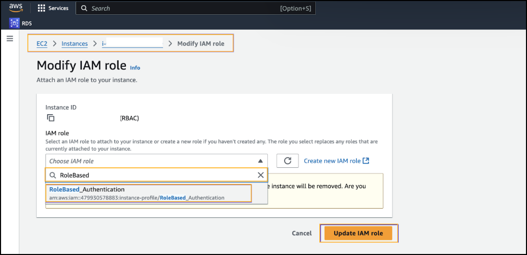 Assign Role to EC2. Select the created role and update it for the instance.