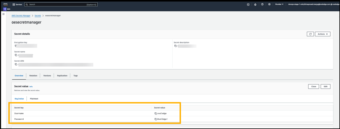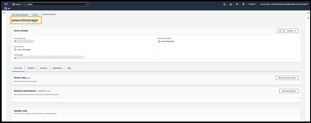 Search for Secrets Manager, then select the created secret. Click “Retrieve secret value.”