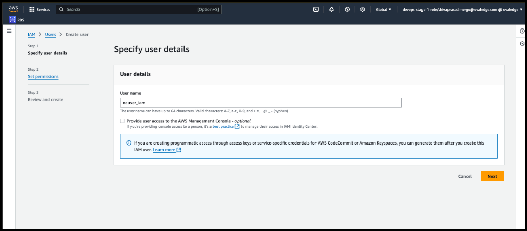 In the Specify user details page, enter ‘User name,’ then click Next.