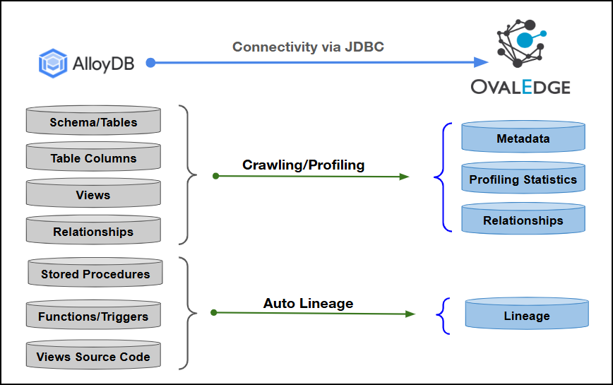 This article outlines the integration process for AlloyDB using PostgreSQL as the connectivity protocol. The integration enables efficient data management through key features such as crawling, profiling, query sheet, data preview, and lineage building (both automatic and manual). It also ensures secure authentication via Credential Manager.