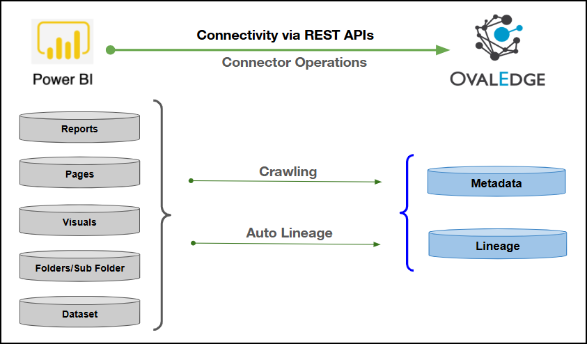 The Power BI (On-Prem) connector uses REST APIs to securely extract metadata from the Power BI Report Server for cataloging and lineage analysis. It also ensures secure authentication via Credential Manager.