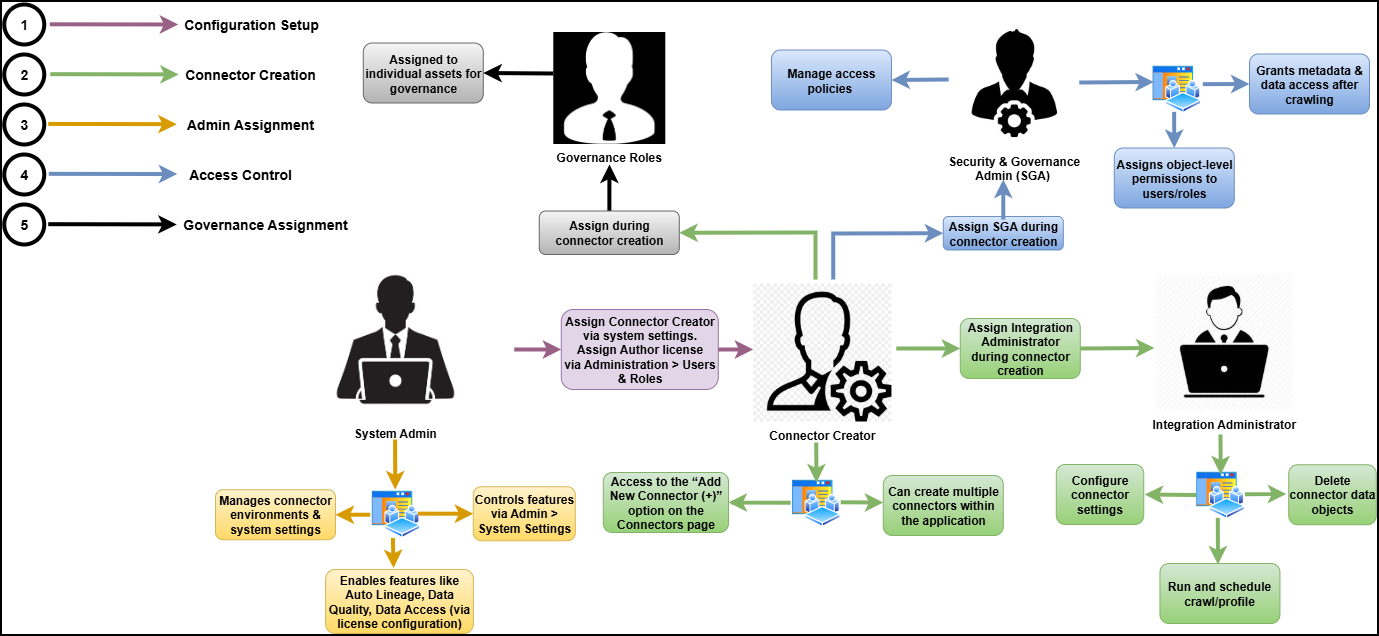 Roles are assigned to manage connectors effectively: