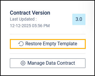 The Data Product Manager can reset the Data Contract to an empty template, removing all defined sections, fields, and values. This action permanently clears the contract configuration and is used when the contract must be rebuilt from scratch.