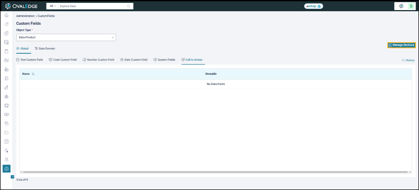 From the Custom Fields > Manage Sections, manage the left and right sections for all the Data Products.