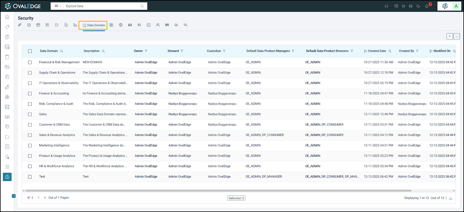 Within the domain context, the Data Product Manager curates metadata, associates supporting data objects, defines business descriptions, and manages delivery access modes in accordance with domain standards. Working within a Data Domain helps maintain consistent metadata, enforce governance requirements, and maintain clear ownership and accountability.