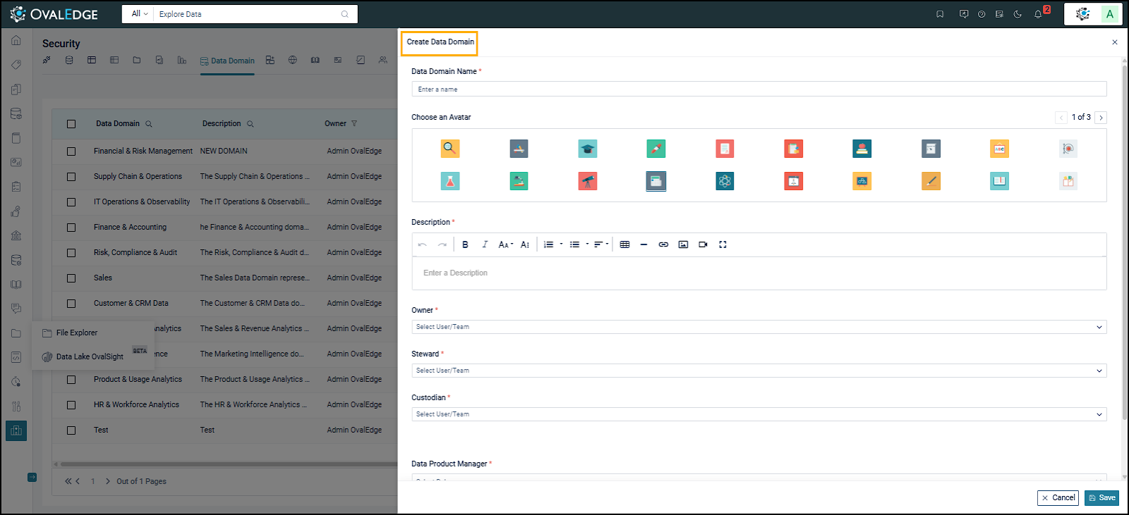 Choose an Avatar: Select a visual icon to represent the Data Domain for easier identification in listings and navigation.