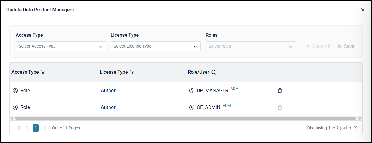 Update Data Product Managers: Update users or roles responsible for managing selected Data Products.