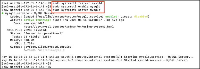 sudo systemctl restart mysqld sudo systemctl enable mysqld