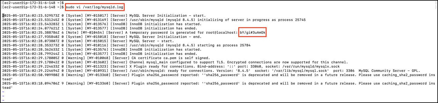 sudo vi /var/log/mysqld.log