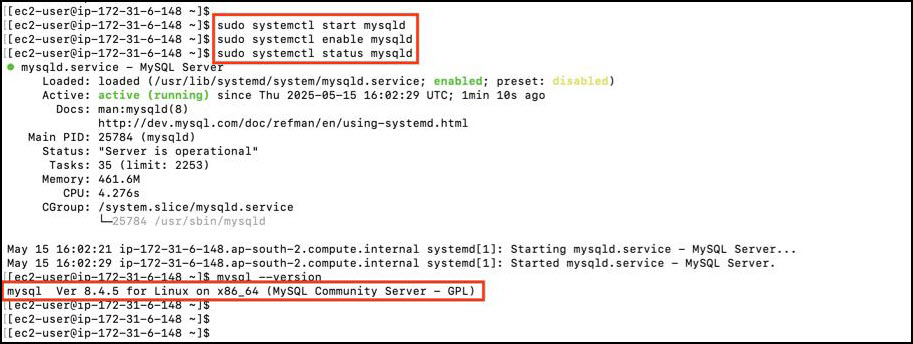 sudo systemctl start mysqld sudo systemctl enable mysqld sudo systemctl status mysqld