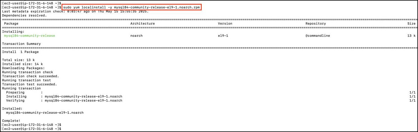 sudo yum localinstall -y mysql84-community-release-el9-1.noarch.rpm