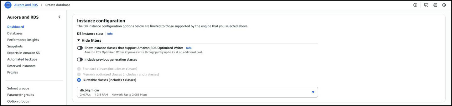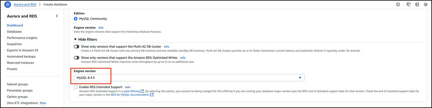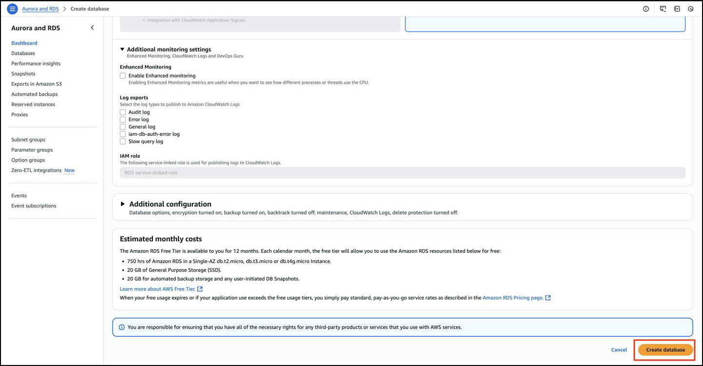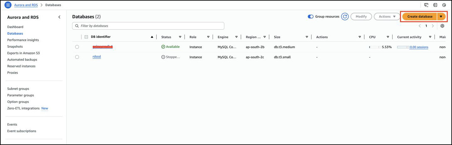 Log in to the AWS Management Console and navigate to: RDS → Databases → Create Database