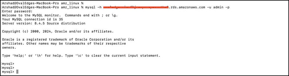 mysql -h <endpoint> -u <username> -pSample Reference Screenshot: