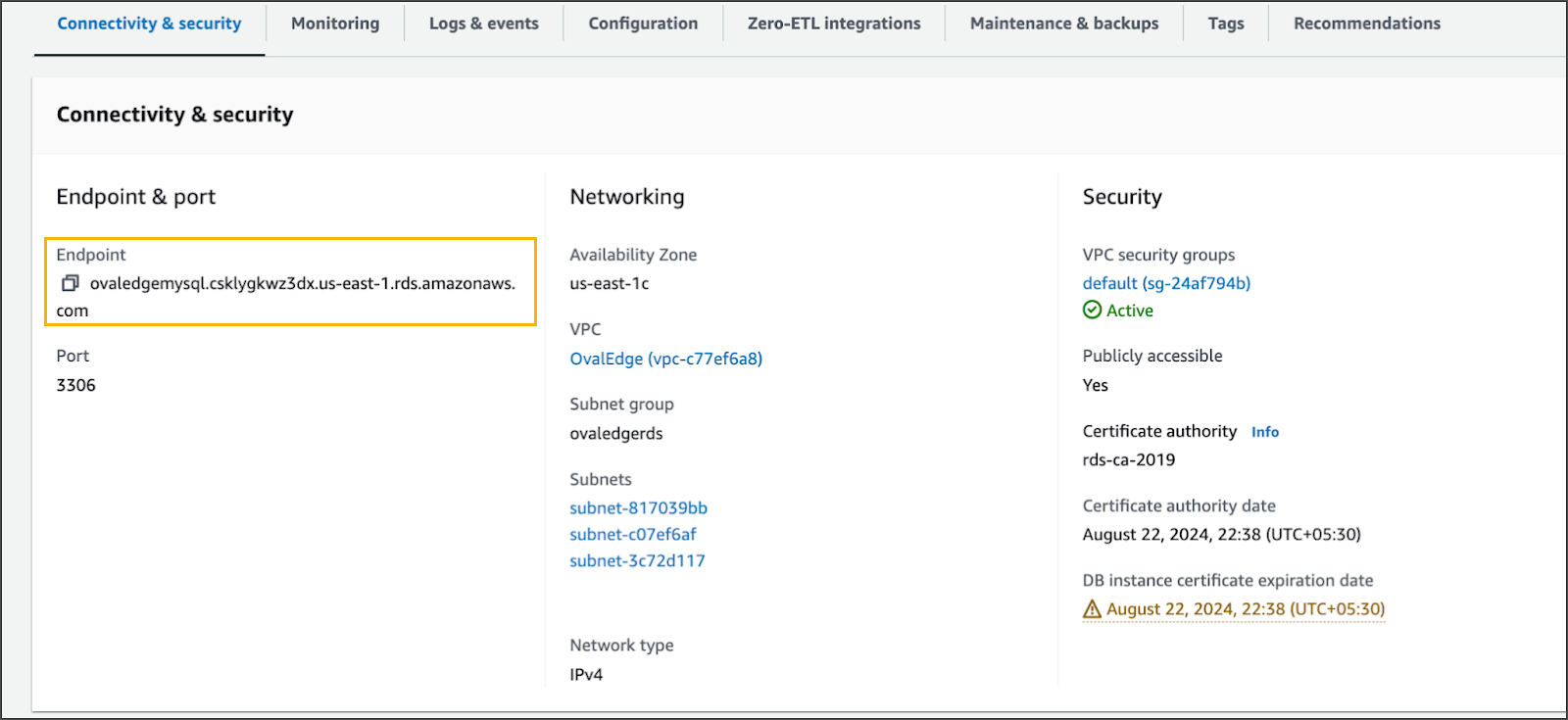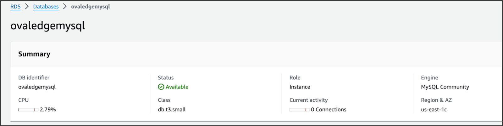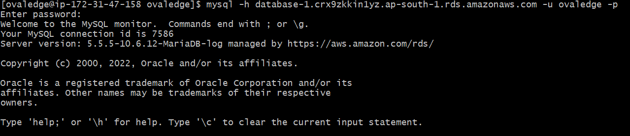 $HOME/ovaledge/).Connect to the RDS instance using MySQL CLI: