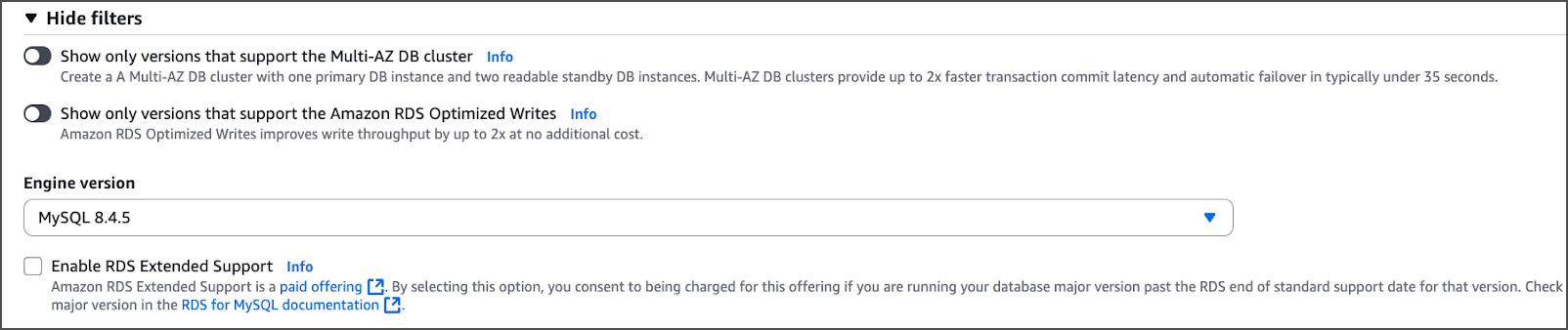 Follow the steps below to provision a new MySQL-compatible RDS instance: