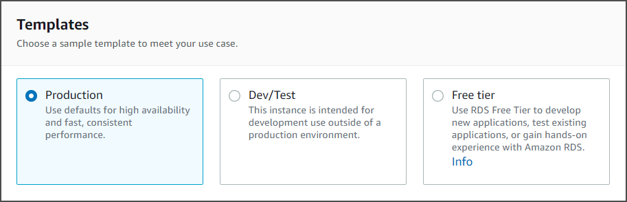 Select a template based on workload (e.g., Production or Dev/Test).