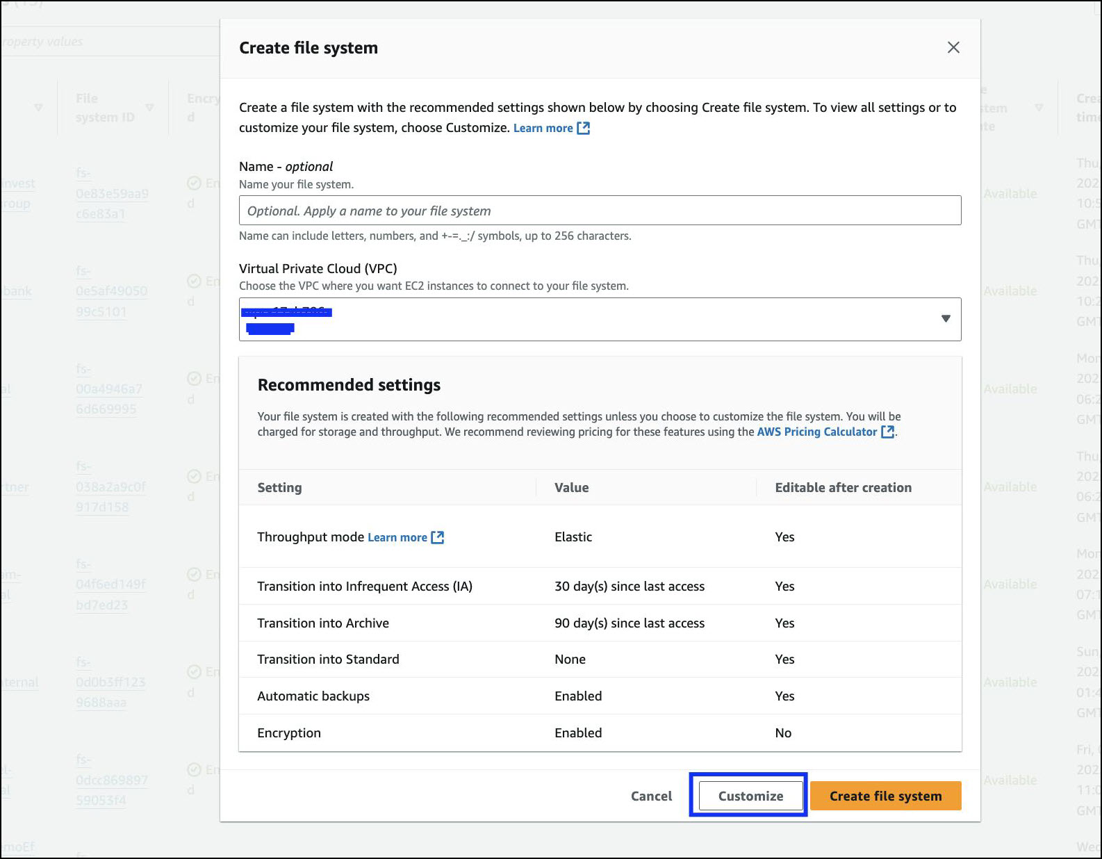 apiVersion: v1 kind: PersistentVolume metadata: name: efs-pv-files spec: capacity: storage: 7Gi volumeMode: Filesystem accessModes: - ReadWriteMany persistentVolumeReclaimPolicy: Retain storageClassName: efs-sc csi: driver: efs.csi.aws.com volumeHandle: <fs-filesystem_ID>::<AccessPointID>apiVersion: v1 kind: PersistentVolumeClaim metadata: name: efs-claim-files spec: accessModes: - ReadWriteMany storageClassName: efs-sc resources: requests: storage: 7Gi