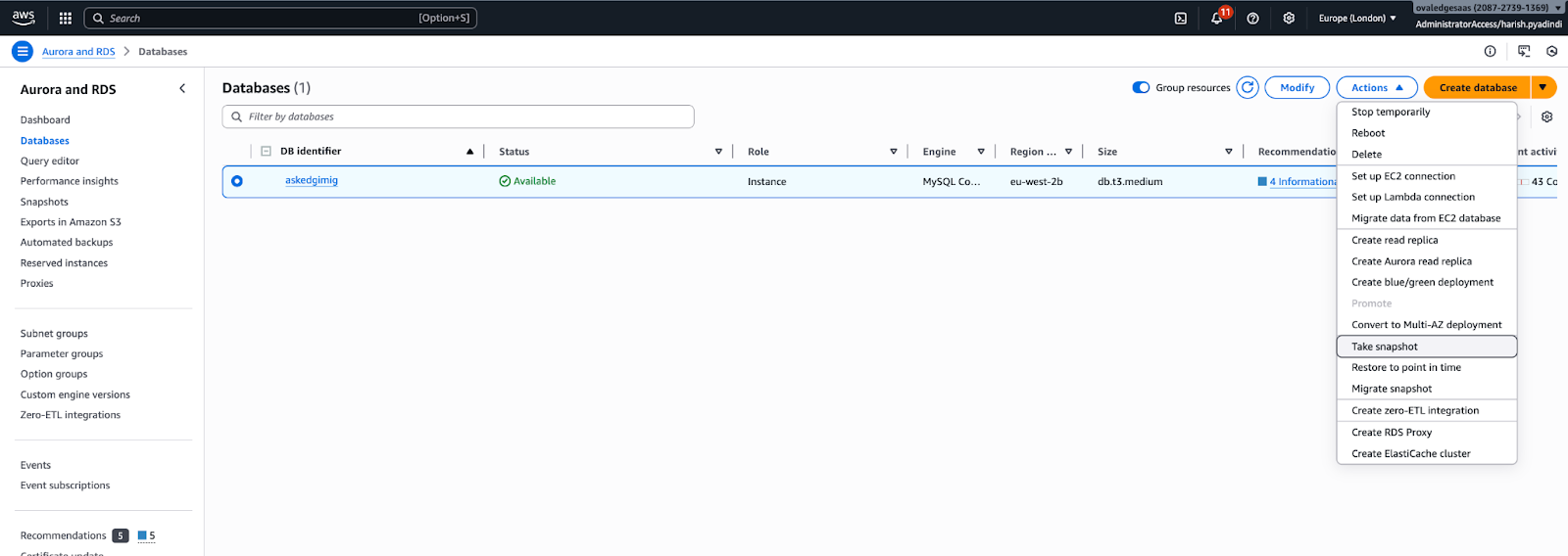 Step 1: RDS Database Backup