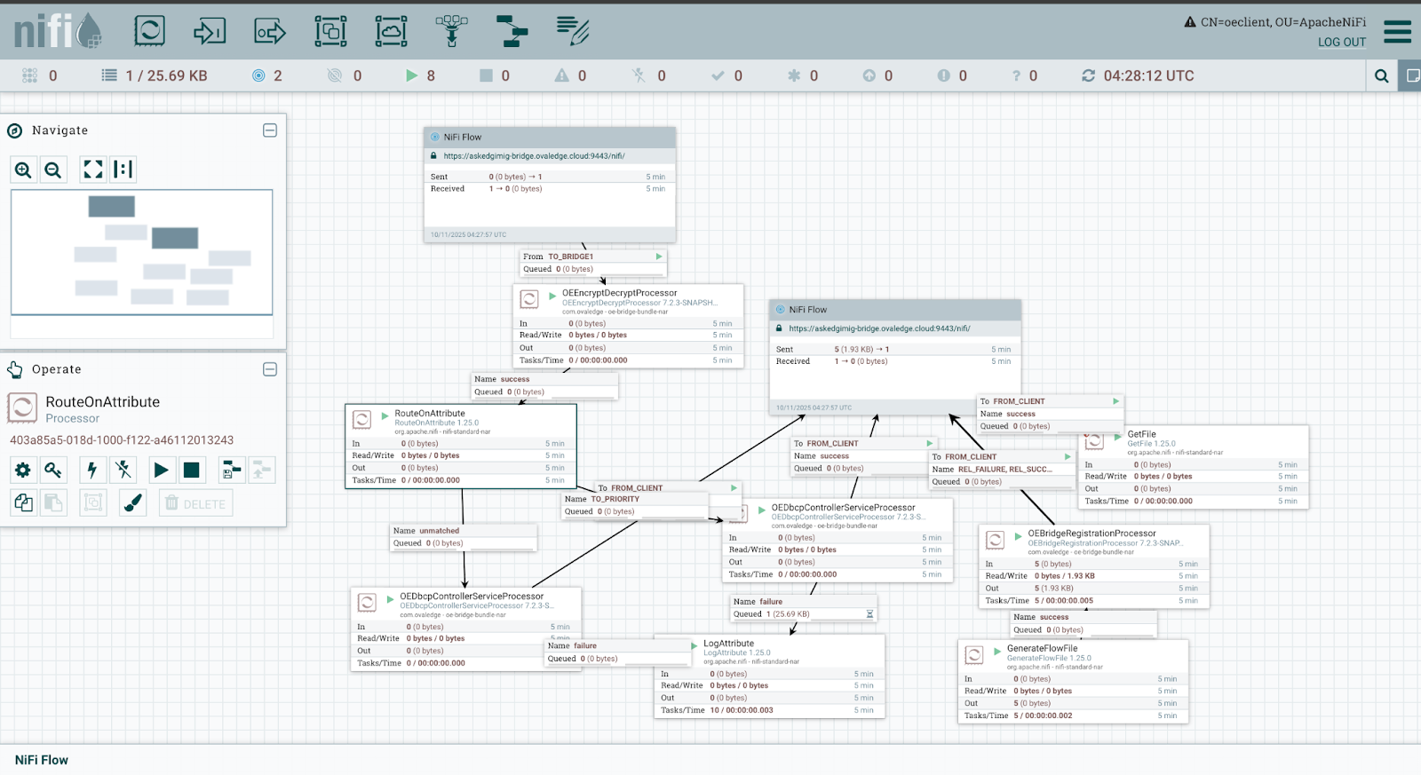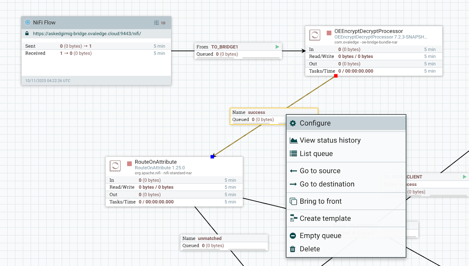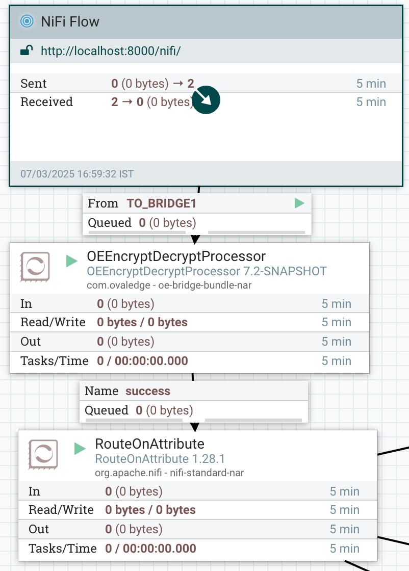 Right-click on RouteOnAttribute, OEEncryptDecryptProcessor, and start the processors.