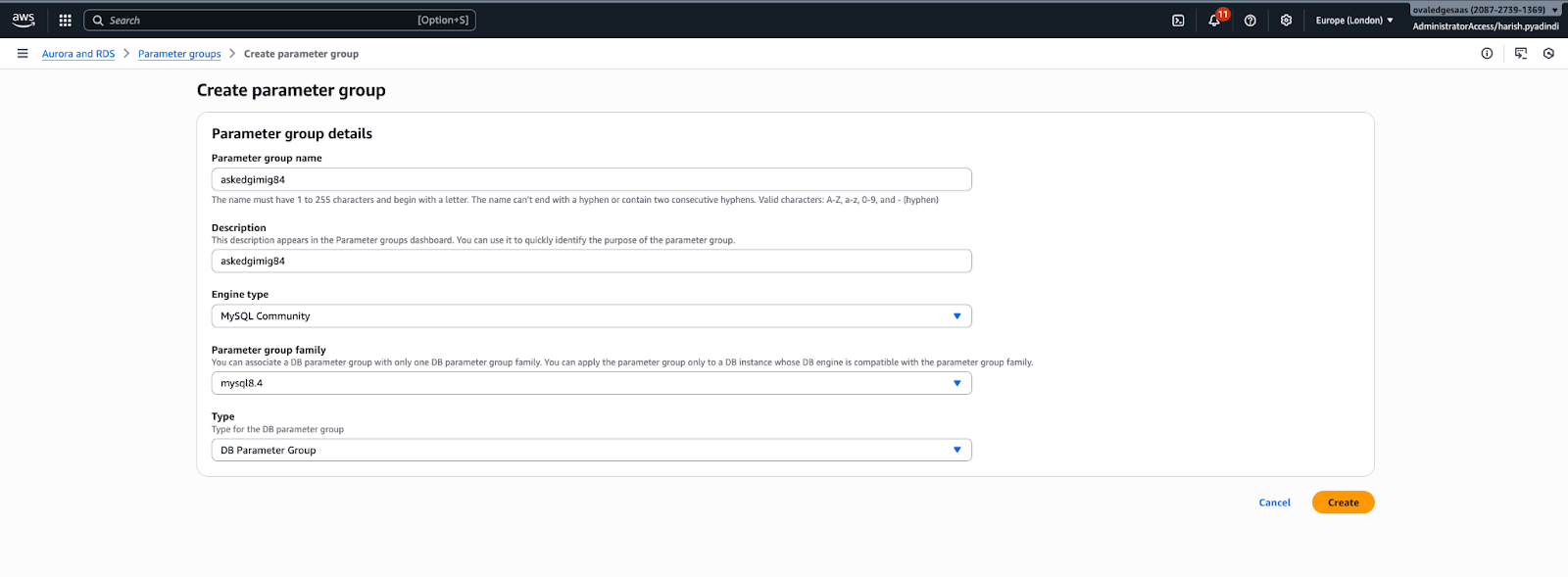 Create a DB parameter group for version 8.4.