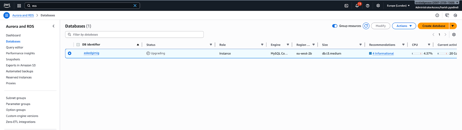Result: RDS is successfully upgraded to version 8.4.46.