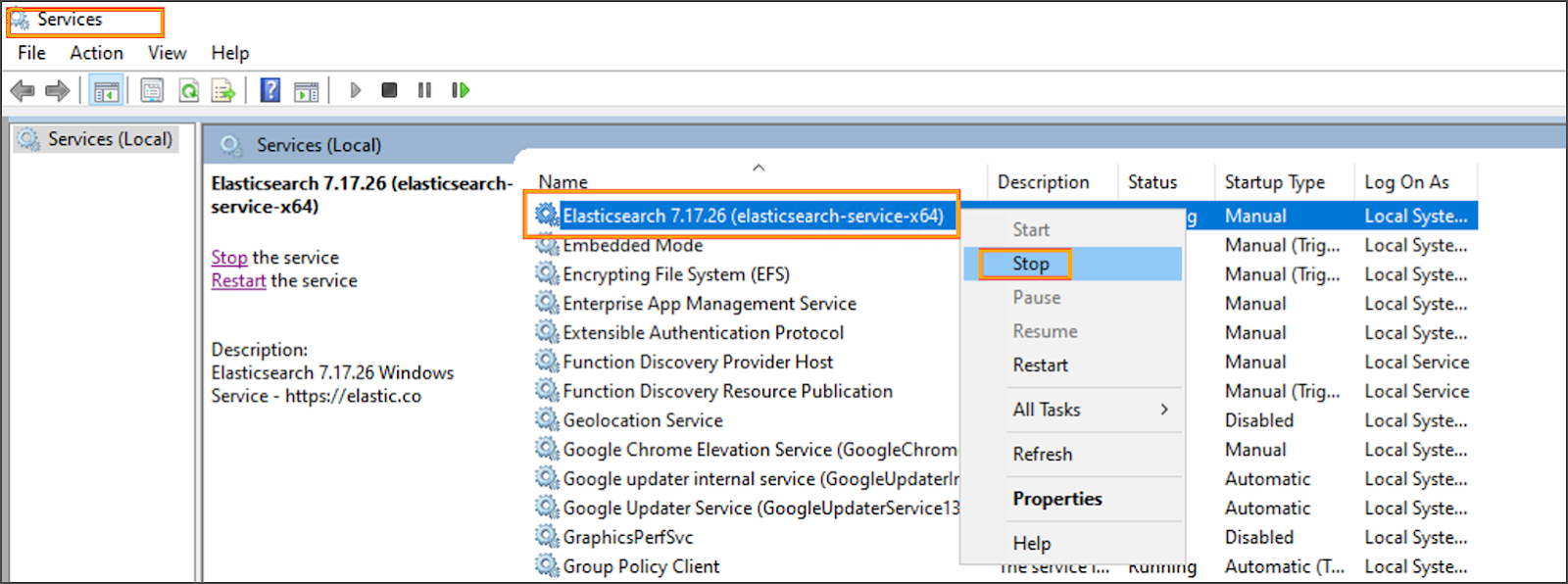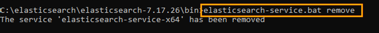 cd C:\elasticsearch-7.17.26\bin elasticsearch-service.bat remove