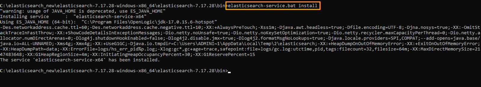 cd C:\elasticsearch-7.17.28\bin elasticsearch-service.bat install