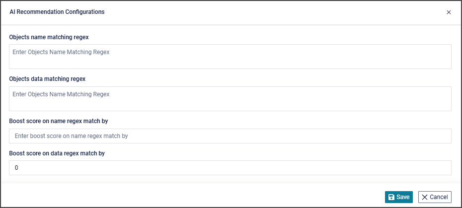 Enter a regular expression pattern to match against object data values. When an object’s data matches this pattern, it receives a data-level Smart Score boost.